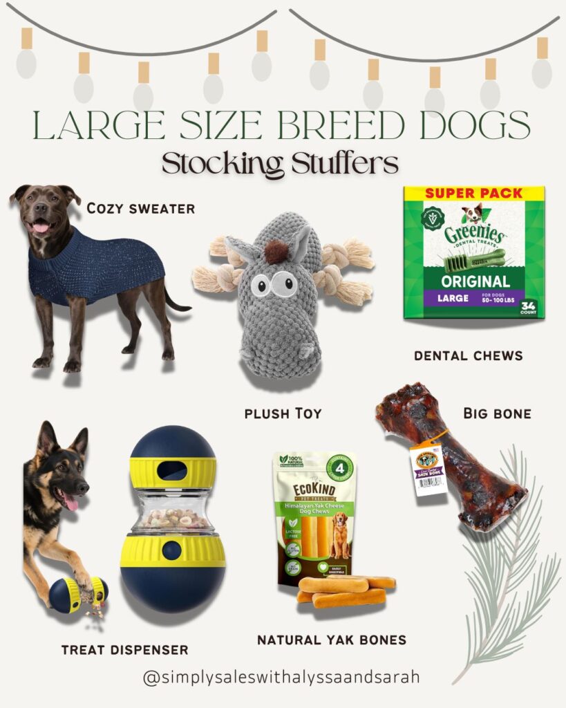 These picks are practical yet fun—and they all fit perfectly into a Christmas stocking (or at least under the tree!). Whether your large dog loves to chew, snuggle, or explore, these items bring the cozy and durable vibes they crave.