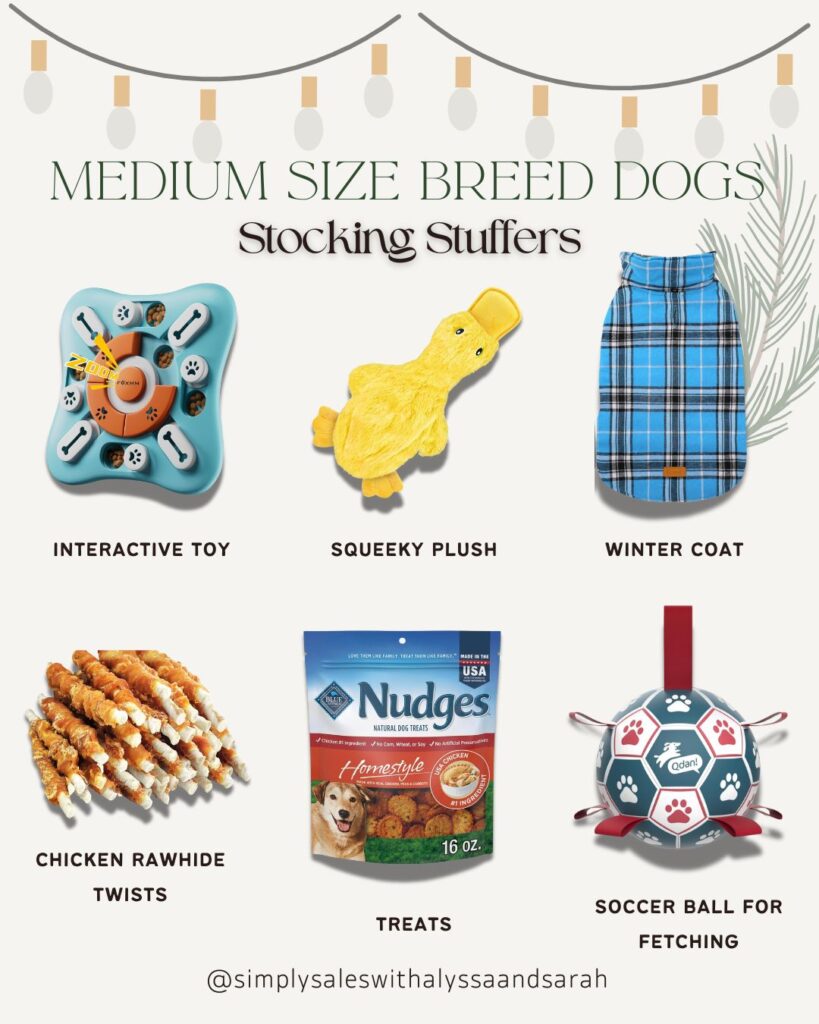 Medium breed dogs are often the perfect mix of playful, cuddly, energetic, and easy to shop for! They’re big enough to enjoy interactive toys but small enough that treats and cozy accessories feel extra special.
